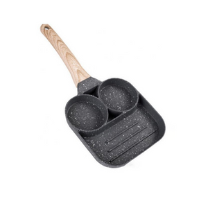 Cu tigaia cu trei compartimente poti satisface patru gusturi diferite. Pregateste pentru copiii tai clatite dragute si oua prajite de dimensiuni egale. Poti face chiar si mancaruri vegetariene sau din carne in aceeasi tigaie fara ca acestea sa se atinga.
