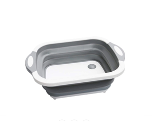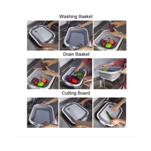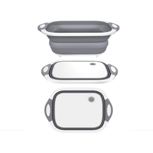 Tocatorul multifunctional va ofera suportul de care aveti nevoie in bucatarie pentru a prepara cele mai gustoase mancaruri.Cu un design modern, acesta este perfect si se poate depozita in bucataria dumneavoastra, facand astfel economie de spatiu.Este portabil atat pentru a putea fi folosit in interiorul casei cat si in exterior, cum ar fi calatorii, rulote, camping, drumetii, canotaj, pescuit, plaja, gradina, picnic, gratar.Acesta mai poate fi folosit ca recipient pentru depozitarea anumitor sticle sau alimente.Mai poate fi folosit ca un simplu tocator de legume, fructe, carne sau verdeata sau poate fi folosit ca vas pentru spalarea acestora. Pentru a scurge apa din el, puteti utiliza dopul cu care este prevazut, printr-o simpla desurubare.Se poate adapta foarte usor necesitatilor dumneavostra datorita celor doua trepte de pliere.Material PP + plastic durabilDimensiune acoperire : aproximativ 40x30x3cm.Culoare: alb/gri