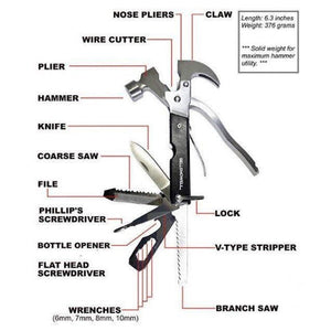 Unealta multifunctionala ciocan patent, 18in1 camping, supravietuire, tactic